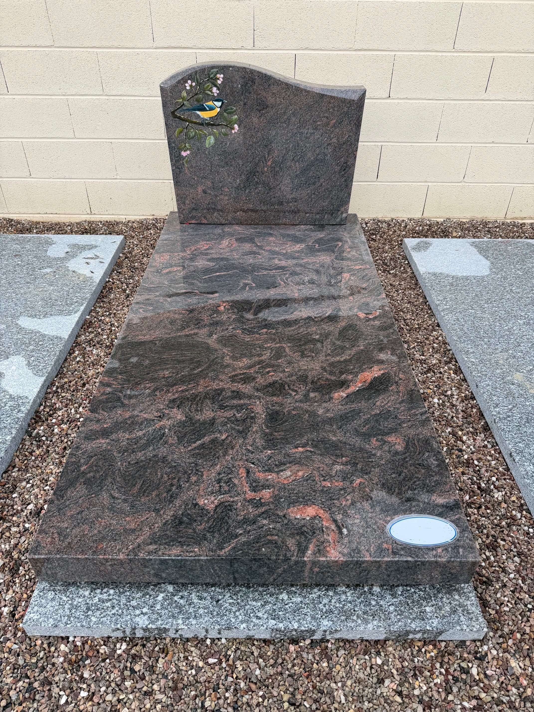 Nos monuments sont exposés sans leur semelle, qui est, pour la plupart des modèles, disponible dans le granit identique au monument. Chaque cimetière ayant ses spécificités (dimensions, hauteurs de placages…), nous les préparons pour chaque commande.
